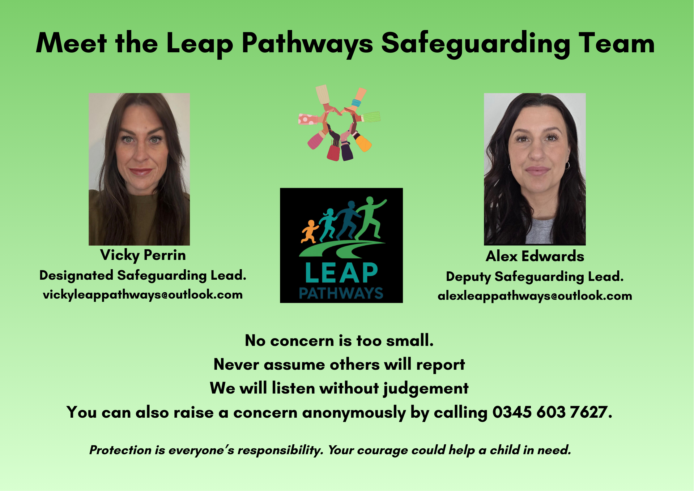 Please contact us if you have any questions or concerns. To view our safeguarding policy please click here.
