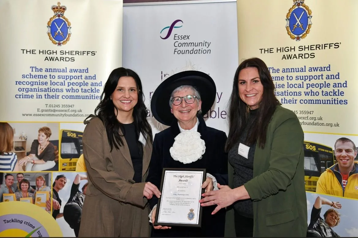 The award was presented during the annual High Sheriff’s Awards ceremony held in Chelmsford, which celebrates charities and voluntary organisations helping to reduce crime, support vulnerable people and build safer communities across the county.